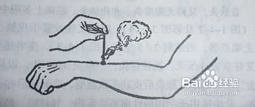 瘢痕灸,又称为化脓灸,临床上多用小艾炷,亦有用中艾炷者。施灸前先在施术部位上涂以少量凡士林或大蒜液,以增加黏附性和刺激作用,然后放置艾炷,从上端点燃,烧近皮肤时患者有灼痛感, 可用手在穴位四周拍打以减轻疼痛。应用此法一般每壮艾炷须燃尽后,除去灰烬,方可换炷,每换1壮,以纱布蘸冷开水抹净所灸穴位,再涂少许凡士林或大标液,1次可灸7~9壮,灸毕,在施灸穴位上擦干净后贴敷玉红膏,大约1周可化脓,化脓时每天换膏药1次。灸疮30~45天愈合,留有瘢痕。在灸疮化脓期间、局部需注意清洁,避免感染。同时注意饮食,情志调节。