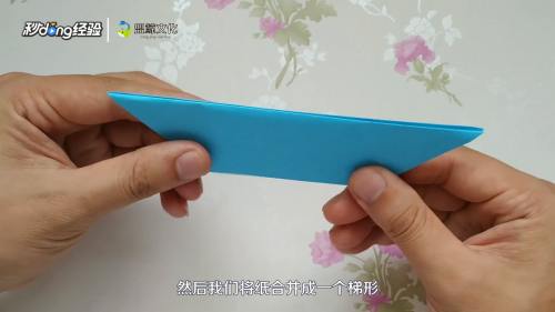 将纸合并成一个梯形,将梯形的两个角向内折。