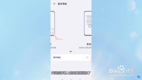 跳转到悬浮导航设置页面之后,关闭悬浮导航功能即可,关闭后屏幕上的圆圈就消除了。