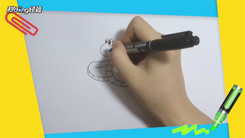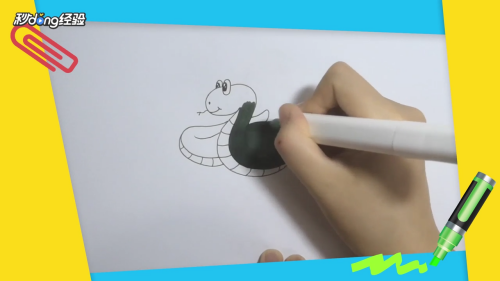 用马克笔对画好的蛇进行上色。