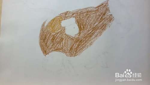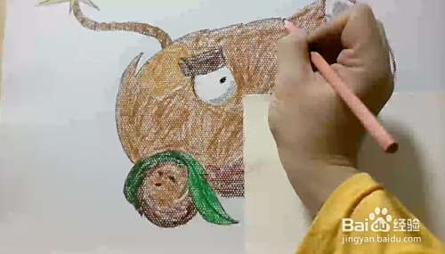 用油画棒开始铺色,虽然油画棒稍微有点叠色的性质,但还是从浅色开始比较好。