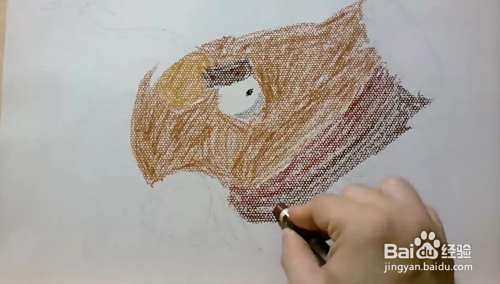 最后用铅笔或者黑色油画棒来重描线条,注意不是重描线稿,必须以最终效果来确定哪里需要线条,哪里不需要线条。