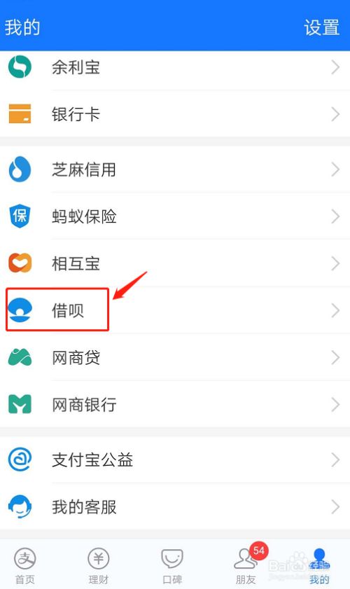 3.进入我的菜单选项,选择页面中的借呗选项;