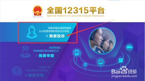 进入到12315平台的主界面以后,然后我们点击【我要投诉】选项,如下图所示。
