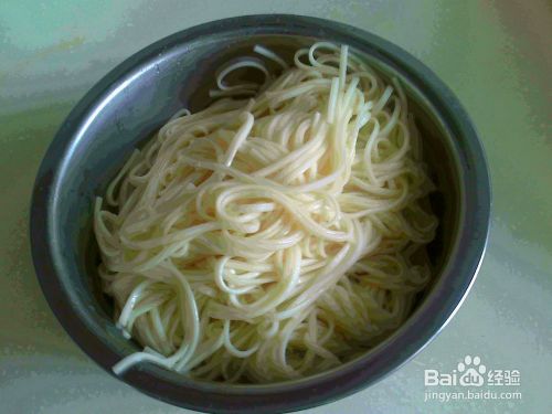 做好的茄子和尖辣椒卤和煮好的面条配着吃【面条是主食】。