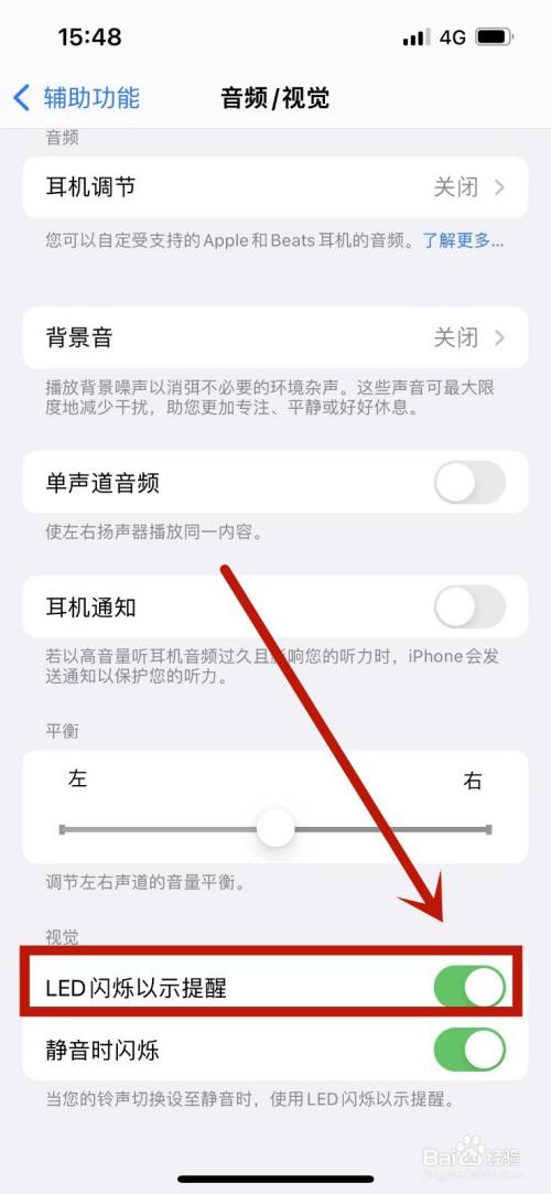 在苹果13手机中,找到设置中的辅助功能,从音频\视觉进入后并打开LED闪烁以示提醒,这样手机前面的灯就可以闪烁了。