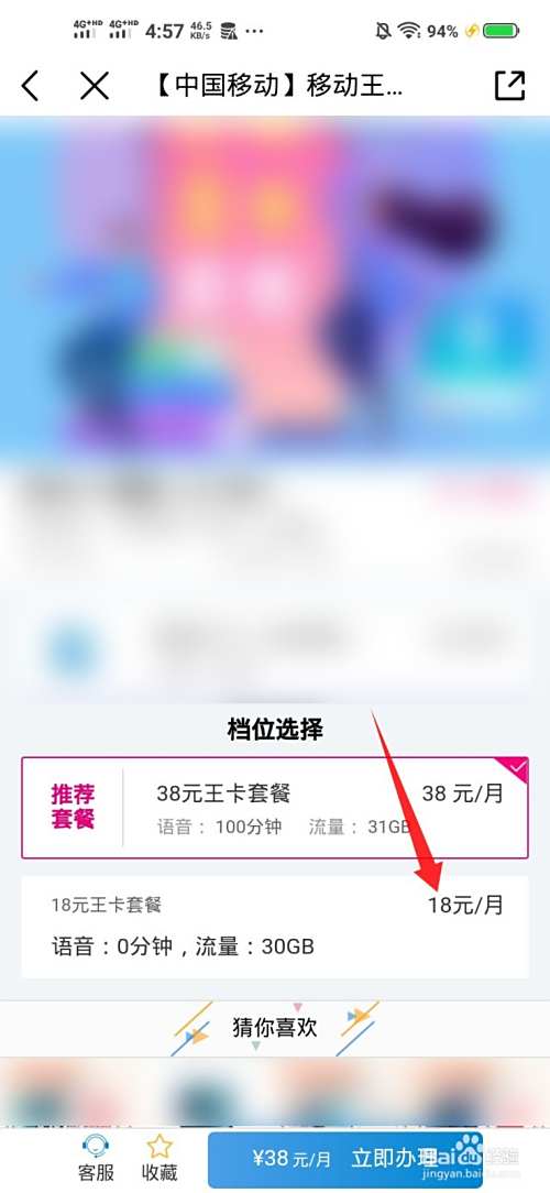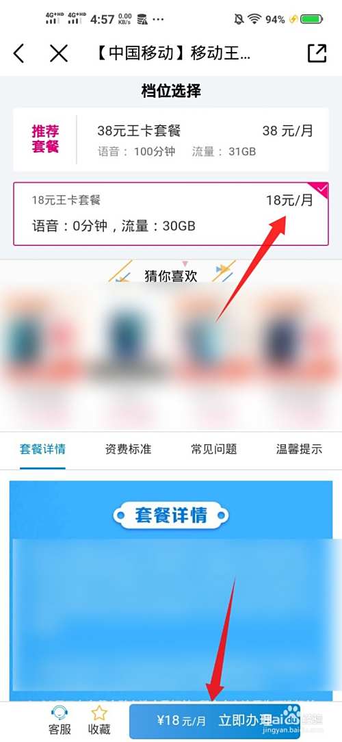 选中之后点击底部的立即办理就降为18元套餐,办理成功之后次月生效。