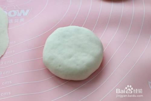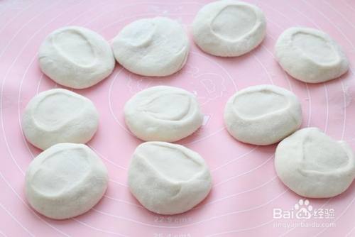 再将收口朝下轻轻按压成饼状,注意力度别大大以免压破饼皮。