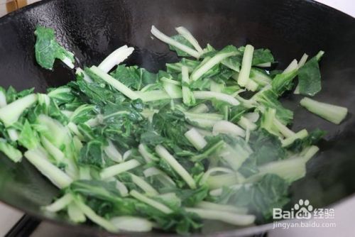 1汤匙油翻炒白菜。
