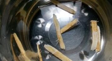 取大约30克黄芪,加10倍的清水浸泡半小时,连水一起烧开,中火煮30分钟,将药汁滗用。