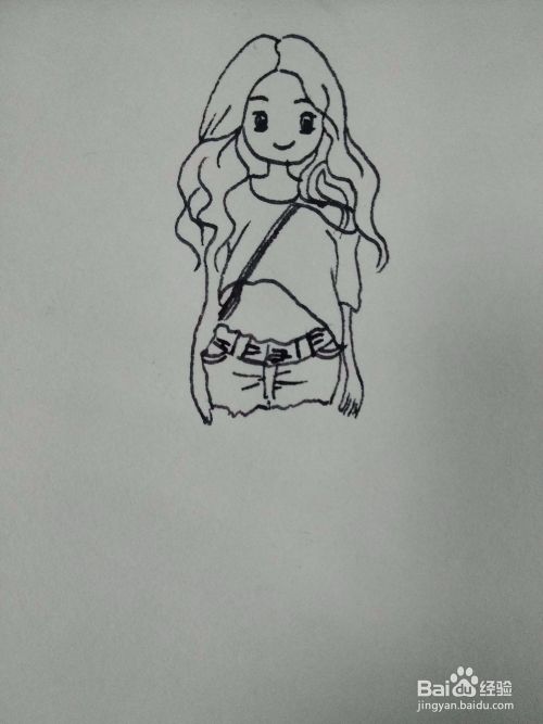 再画出女孩穿的短牛仔裤,注意画出牛仔裤上的细节部分