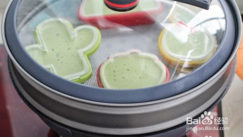3.模具里刷一层薄薄的黄油,将面糊倒进去刮平表面,也可以用六寸的戚风模具操作。放进蒸笼内冷水上锅,开大火蒸约30分钟。将蒸好的发糕取出晾至不烫手后脱去模具。一款暄软美味的菠菜发糕就做好了。