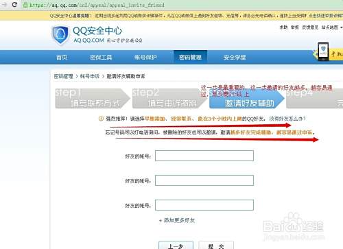 6.最后就到了要你邀请好友的步骤了,这一步是最重要的,是你能不能申诉成功的关键,就算你前面填的不好,这一步填好了5个以上的好友邀请,一定可以成功。所以最重要,大家一定要记得邀请5个好友以上。如下图: