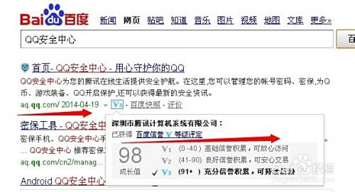 1.首先要进入“QQ申诉的”官网,百度搜索下“QQ安全中心”,排在第一的就是QQ申诉官网,百度也给出了官网标识。如下图:
