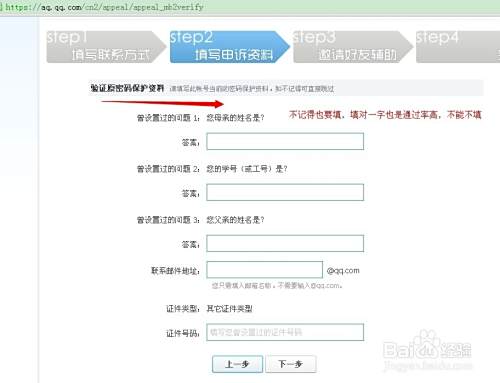 5.下面就到你填写密保的步骤了,一定要填,这个也重要,不记得也要填。如下图: