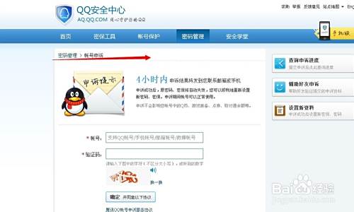 2.我们进入到QQ安全中心官网,填入自己要申诉的QQ号。如下图: