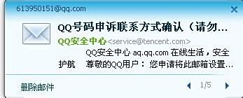 8.过了四个小时后,如果申诉成功了就有收到邮箱啦,进入邮箱一看,里面有QQ申诉回执编号及QQ申诉成功凭证。如下图: