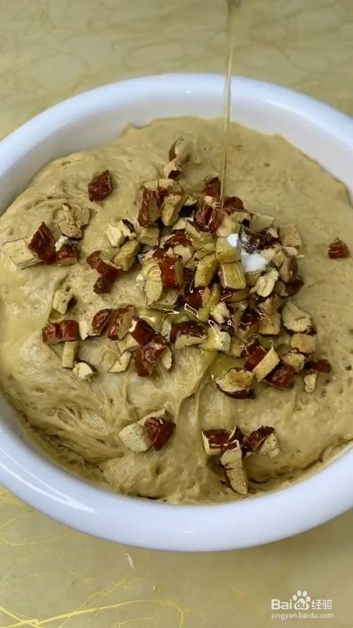 在碗中放100克红糖、300克温水、5克酵母粉搅拌化开,加入500克面粉,和成黏糊状醒发两倍大。