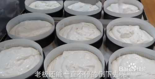 紧接着将蛋糕粉,小苏打粉等材料过筛后倒入机器中,搅拌成奶白色的面糊,用勺子盛到模具中