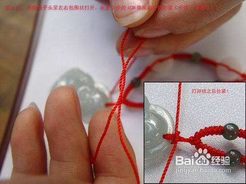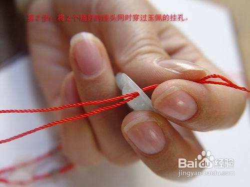 绳端一起穿过吊坠挂件孔。