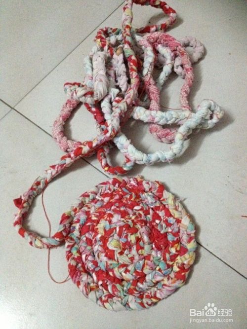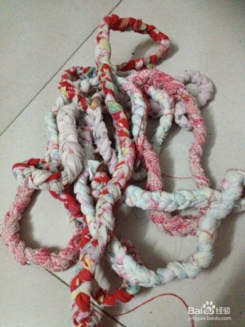 把旧衣服,旧床单撕成约八厘米宽度的布条,长度根据布的大小自定义。把撕好的布条像辫麻花辫一样辫成长长的绳子,如图