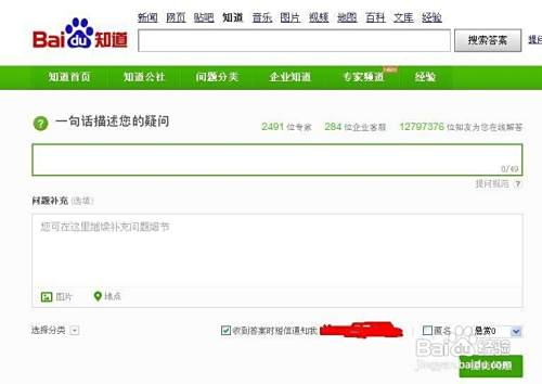 单击“知道”按钮后,页面会跳转到如图所示:这时我们单击输入框旁边的提问按钮。