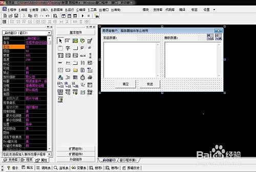 在创建的窗口上,绘制客户组件、服务器组件各一个,标签组件、编辑框组件、按钮组件各两个,调整相关组件的大小和相对位置。如图: