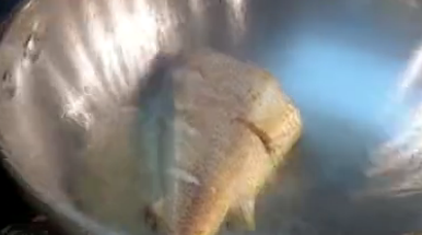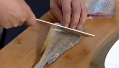 大黄花鱼一斤三两左右的一条,将鱼一刀切两半,打上花刀。