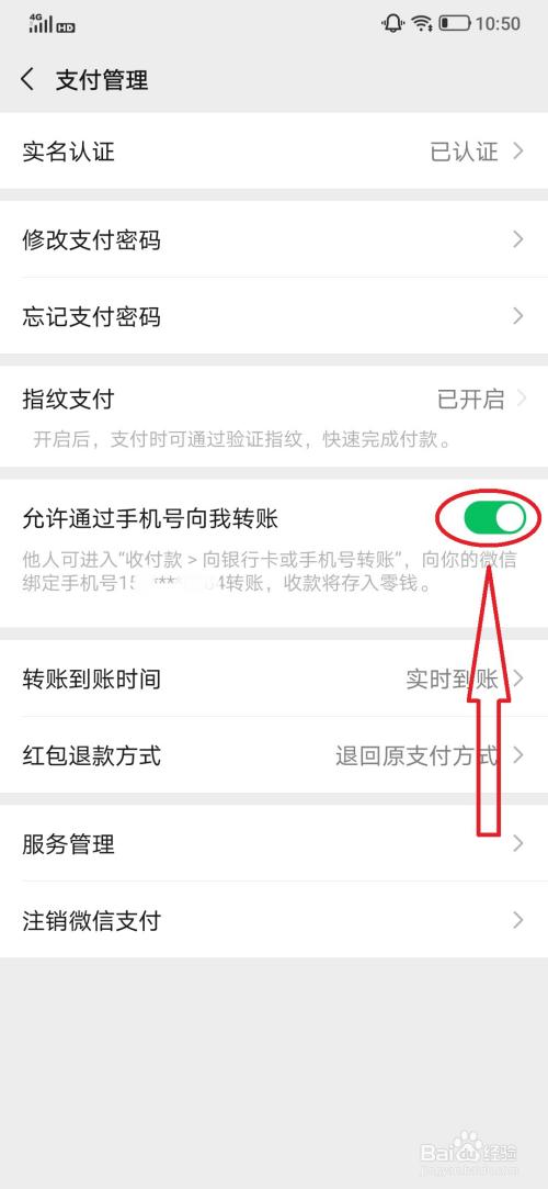 在支付管理中点击打开“允许通过手机号向我转账”选项的开关即可。
