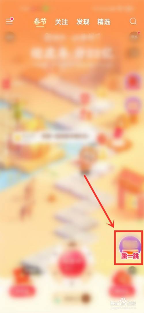 打开快手APP首页,进入春节界面,点击右下角“跳一跳”。