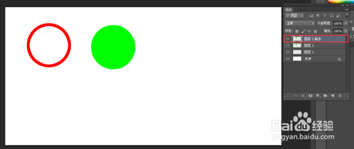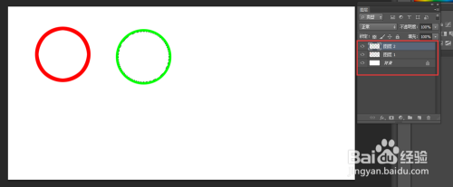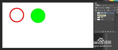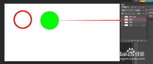 在上面文件中,新建图层二,选择“椭圆选框工具”,按住shift键,绘制规则圆形,设置前景色为:绿色,按快捷键Alt+Delete填充前景色