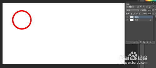 新建图层一,选择“椭圆选框工具”,按住shift键,绘制规则圆形,设置前景色为:红色,按快捷键Alt+Delete填充前景色