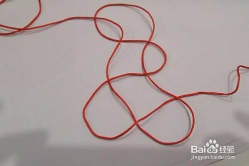 先将红绳进行对折一下,形成左、右2根绳子。