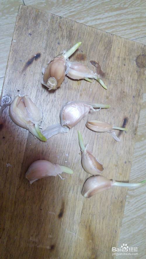 将发芽的大蒜,掰成一个一个的,注意掰的时候不要弄断芽苗,扔掉坏掉的,保留芽苗发育良好的