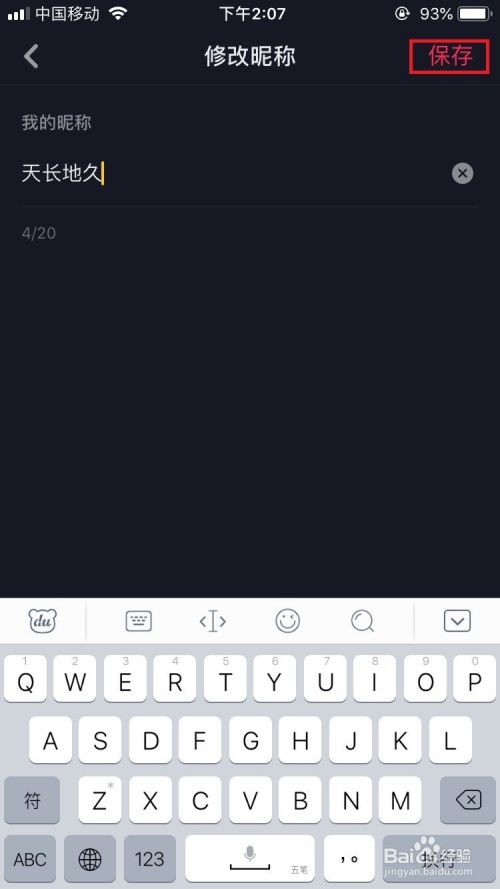 输入昵称之后点击“保存”按钮。