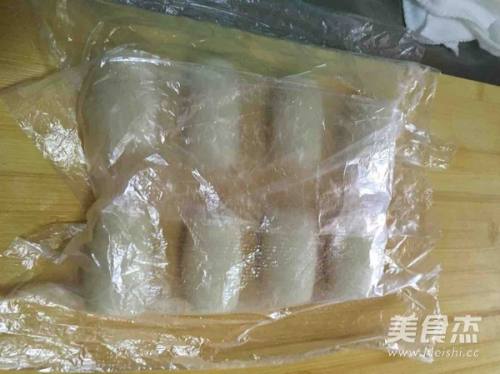 11用擀面杖擀成长椭圆形卷起,保鲜膜覆盖醒发15分钟