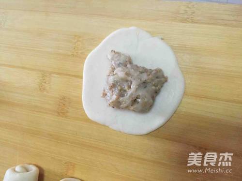 15将做好的馅料平均分成8份,取一份,包入擀好的面皮中