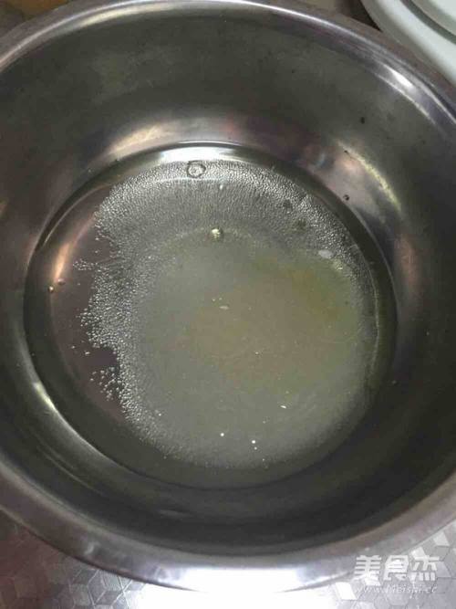 1将馅料中的水,油,糖放入小盆,小火将糖融化后