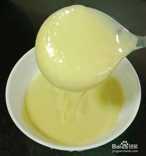 黄瓜汁倒入蛋黄中,搅拌均匀。