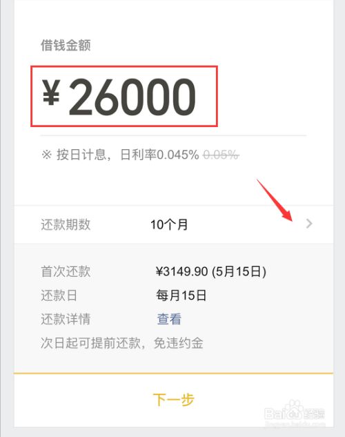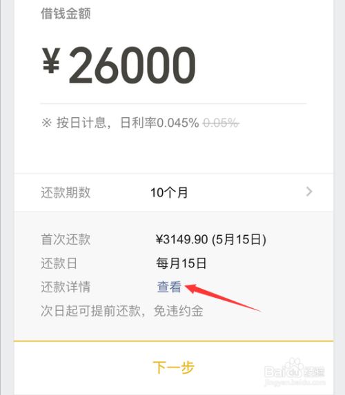 我们将可以清楚地看到每个月需要还款的金额,如果没问题,返回原来的页面,点击【下一步】