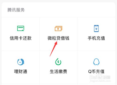 指纹验证成功,进入到微信钱包首页,可以看到【微粒贷借钱】选项,直接打开