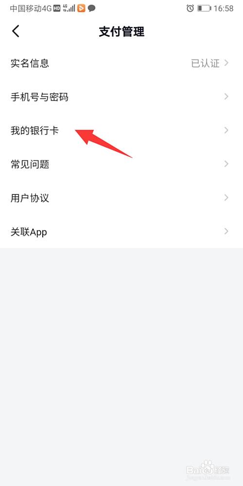 进入页面选择我的银行卡