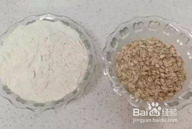 1、准备材料:面粉150克,燕麦片(非即食)70,白芝麻适量,发酵粉1克。
