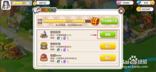 探索完毕,回到日常任务中,可以发现后面的按钮变成了绿色的领取,说明探索成功,获得相应的奖励。