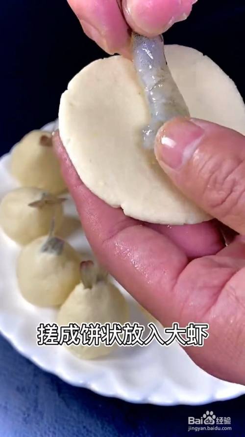 土豆蒸熟后碾压成泥,加入盐,糯米粉揉成不沾手的面团,再搓成饼状放入大虾。