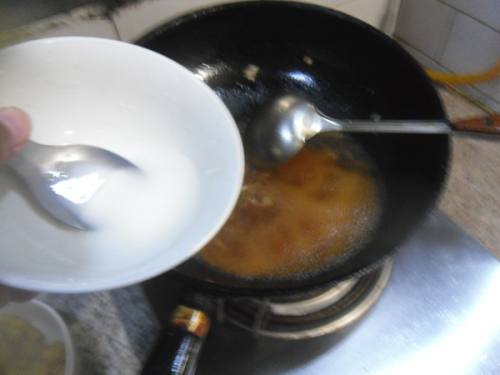 16快速翻勺,主辅料均匀裹匀芡汁,即可关火