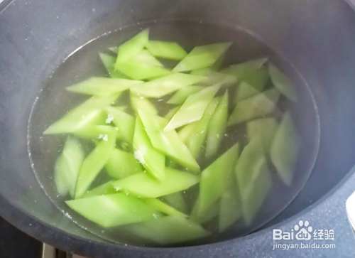 锅中水开,加一丟丟油和盐,再放入莴笋煮1分钟捞出过凉备用