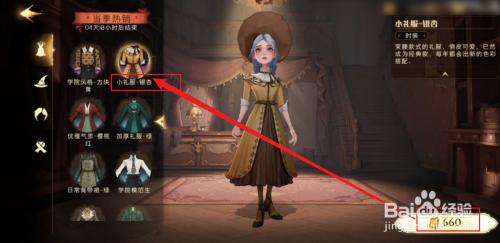 如图所示随后选择【小礼服银杏】花费黄色水晶进行购买