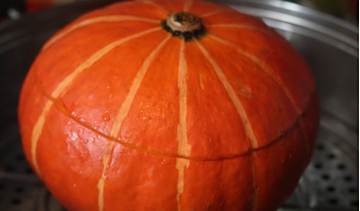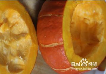 把一个南瓜洗干净后切掉上半部