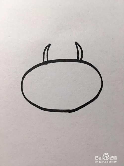 在椭圆形上方左右两侧各画一个牛角。